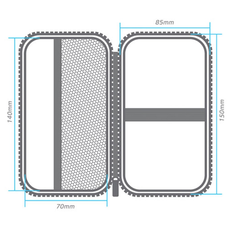 Neoline Case S - кейс для хранения устройств и аксессуаров Neoline c внутренними размерами 70х140 мм. Кейс размера S позволяет хранить или переносить в себе видеорегистраторы Neoline Wide Sxx и G-Tech X7x. Внутренняя поверхность кейса не поцарапает корпус вашего гаджета, а сетчатый карман позволит уложить кабеля и прочие элементы прибора. Снаружи кейс покрыт полиуретаном. Застежка на молнии.
